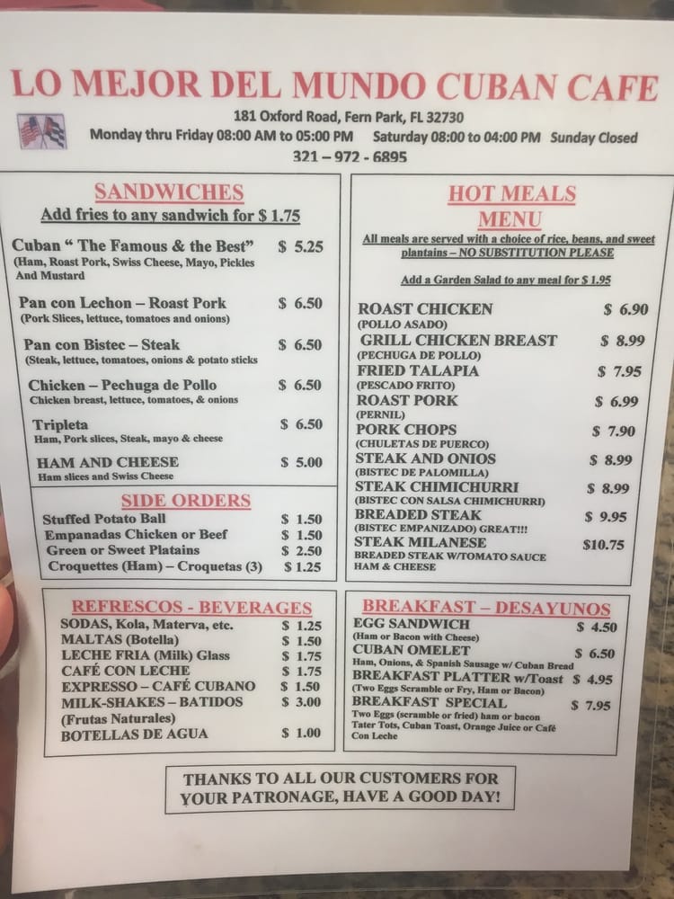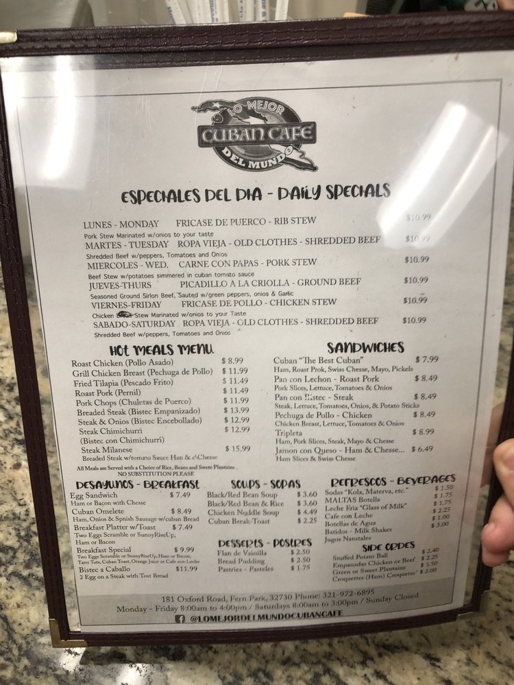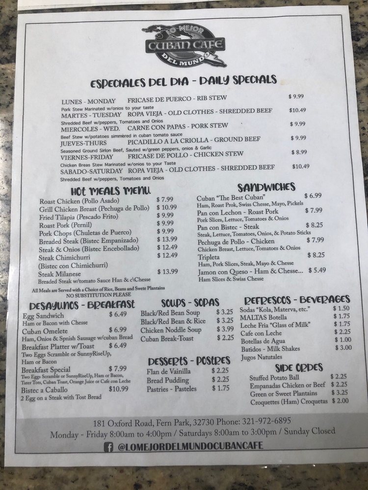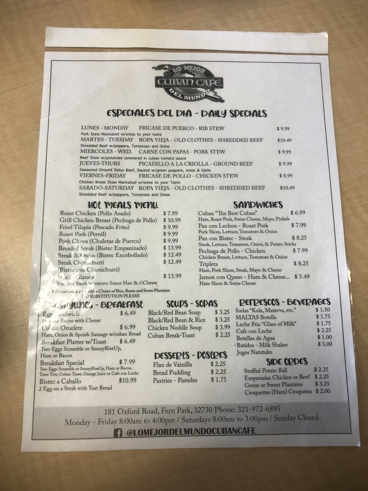 Whether you're stopping by for a quick lunch or a family meal, Lo Mejor Del Mundo Cuban promises a satisfying experience steeped in culinary tradition.